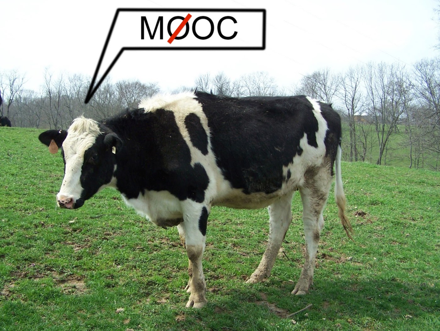 The professor’s intention was to see if he could get students to migrate to a non-Coursera platform and spur a discussion of the hazards of data-mining in free online courses. Unfortunately, he was not “open” with his students and therefore, many reacted with anger instead of engaging in reflection about the fact that their behavior and Non-open MOOC-cow.jpgemotions in the course’s online forum were being tracked by Coursera, without their consent and for the benefit of Coursera.
